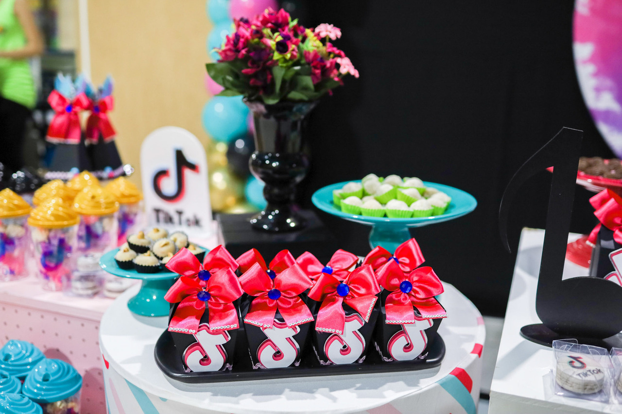 A escolha do tema TikTok foi certeira: super atual, colorido e com a cara da Malu! A decoração teve, ícones do app, pista de dança, painel instagramável e muita animação do começo ao fim!